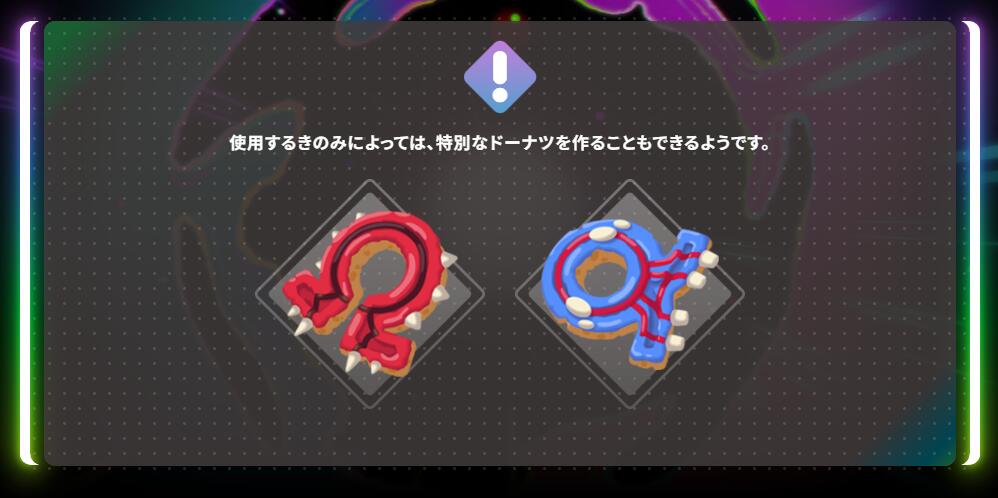 特に、異次元ミアレで入手できる希少な「異次元きのみ」を使えば、通常よりも効果の高いドーナツが完成し、異次元レベルの強力なポケモンとの戦いに備える重要なアイテムとなります。