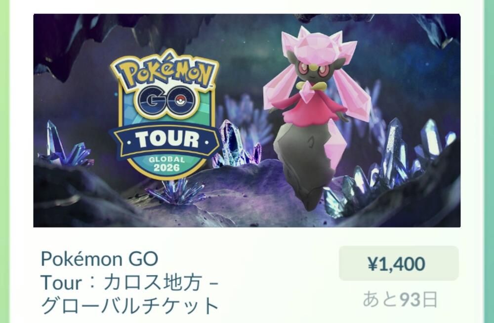 ディアンシー(幻のポケモン)が手に入るイベント「Pokemon GO Tour:カロス地方 - グローバルチケット」(2026年2月28日〜3月1日)が販売中です!