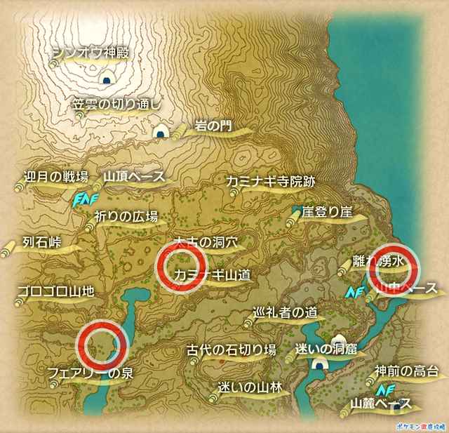 チェリムは『フェアリーの泉(天冠の山麓)』の北(上)の橋の西側(左)の揺れる木がオススメ。現在ポジフィルムは捕まえられない不具合あり。(→チェリムの捕まえ方と場所の詳しい解説はこちら)