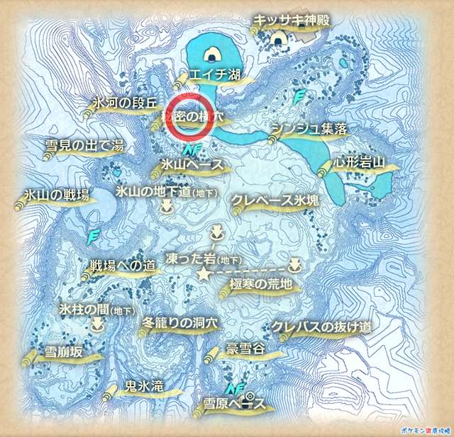 - 『純白の凍土』の『秘密の横穴(純白の凍土)』の調べるポイントに行き、ヨネにキノコよせだま10個を渡す。