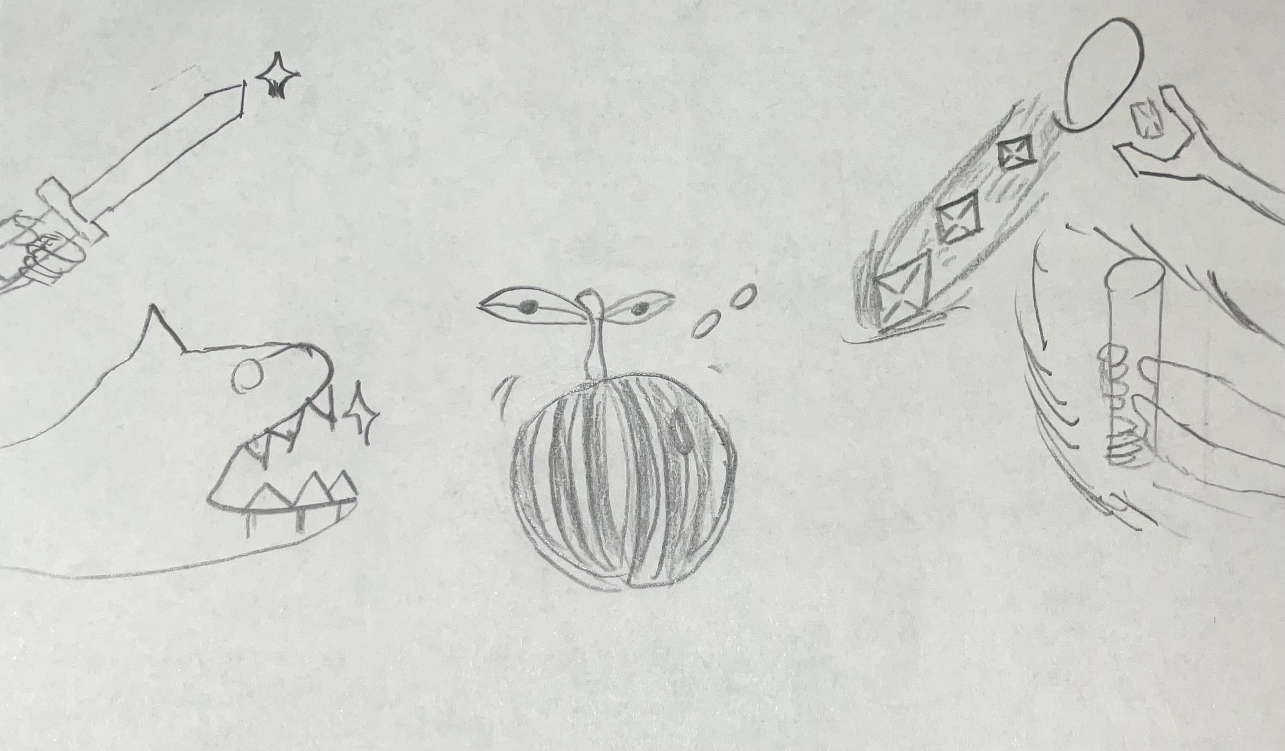カジッチュさん、夏仕様でスイカバージョンになりました。リージョンフォームってやつ?それでも、横を見てください。殺気立つ棒を持った人に、結晶という名の魔法を使って粉々にしようとしてきたり、鮮血を牙につけた犬にかじられそうになったり、鋭い日本刀で粉微塵にされそうになっています。